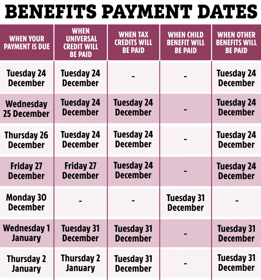 | Universal Credit | 25–26 Dec 2025 | 24 Dec 2025 |